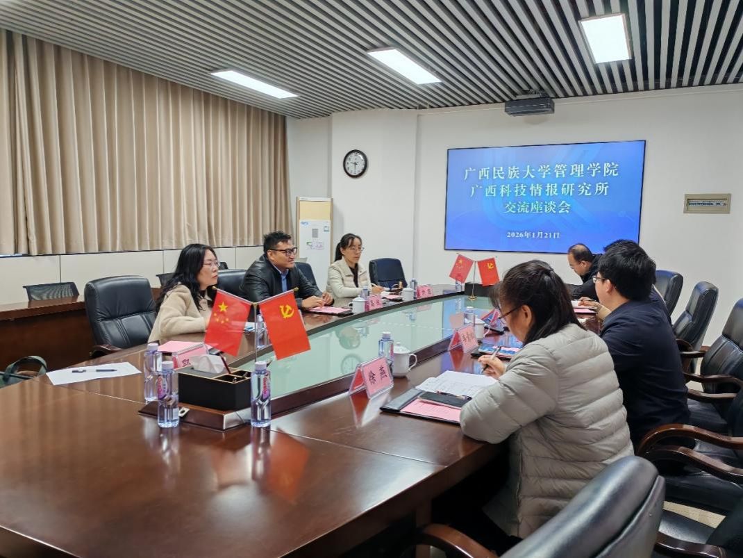 2026年1月21日,广西民族大学bw必威西汉姆联院长高斌率副院长郑慧、信息资源管理系主任饶圆和鄂尔江副教授一行,赴广西科技情报研究所和广西壮族自治区图书馆开展调研,旨在深化校所(馆)合作,拓宽合作领域。