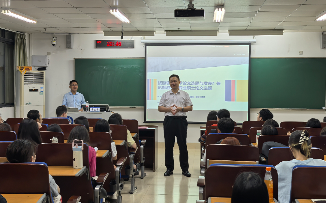 5月20日晚,四川大学旅游学院教授、博士生导师、全国旅游管理硕士MTA教育指导委员会委员李志勇教授在我校国际教育综合大楼420教室为师生作《旅游领域学术论文选题与发表》主题讲座。此次讲座由bw必威西汉姆联李伟山副院长主持,bw必威西汉姆联教师及研究生参加本次讲座。