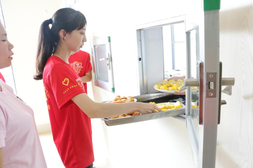 志愿者为孩子们准备食品
