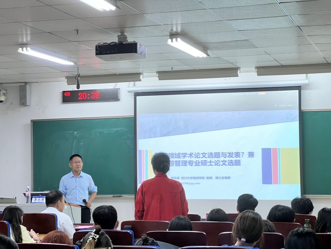 5月20日晚,四川大学旅游学院教授、博士生导师、全国旅游管理硕士MTA教育指导委员会委员李志勇教授在我校国际教育综合大楼420教室为师生作《旅游领域学术论文选题与发表》主题讲座。此次讲座由bw必威西汉姆联李伟山副院长主持,bw必威西汉姆联教师及研究生参加本次讲座。